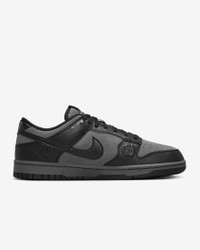 You can always count on a classic. The Dunk Low pairs its iconic color blocking with premium materials for game-changing comfort that lasts. Plus, embossed roses add an elevated touch. The possibilities are endless—how will you wear your Dunks? Benefits - Synthetic leather and suede upper softens and gains vintage character with wear. - Foam midsole offers lightweight, responsive cushioning. - Rubber outsole with classic pivot circle adds durable traction and heritage style. Product Details - 2 sets of laces - Padded collar - Perforated toe box - Shown: Iron Grey/Iron Grey/Black - Style: HF1986-001