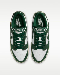 You can always count on a classic. The Dunk Low pairs its iconic color blocking with mixed materials and plush padding for game-changing comfort. The possibilities are endless—how will you wear your Dunks? Benefits - Synthetic leather and textile upper softens and gains vintage character with wear. - Foam midsole offers lightweight cushioning. - Rubber outsole with classic pivot circle adds durable traction and heritage style. Product Details - Shown: Summit White/Sail/Metallic Gold/Gorge Green - Style: IB4417-100