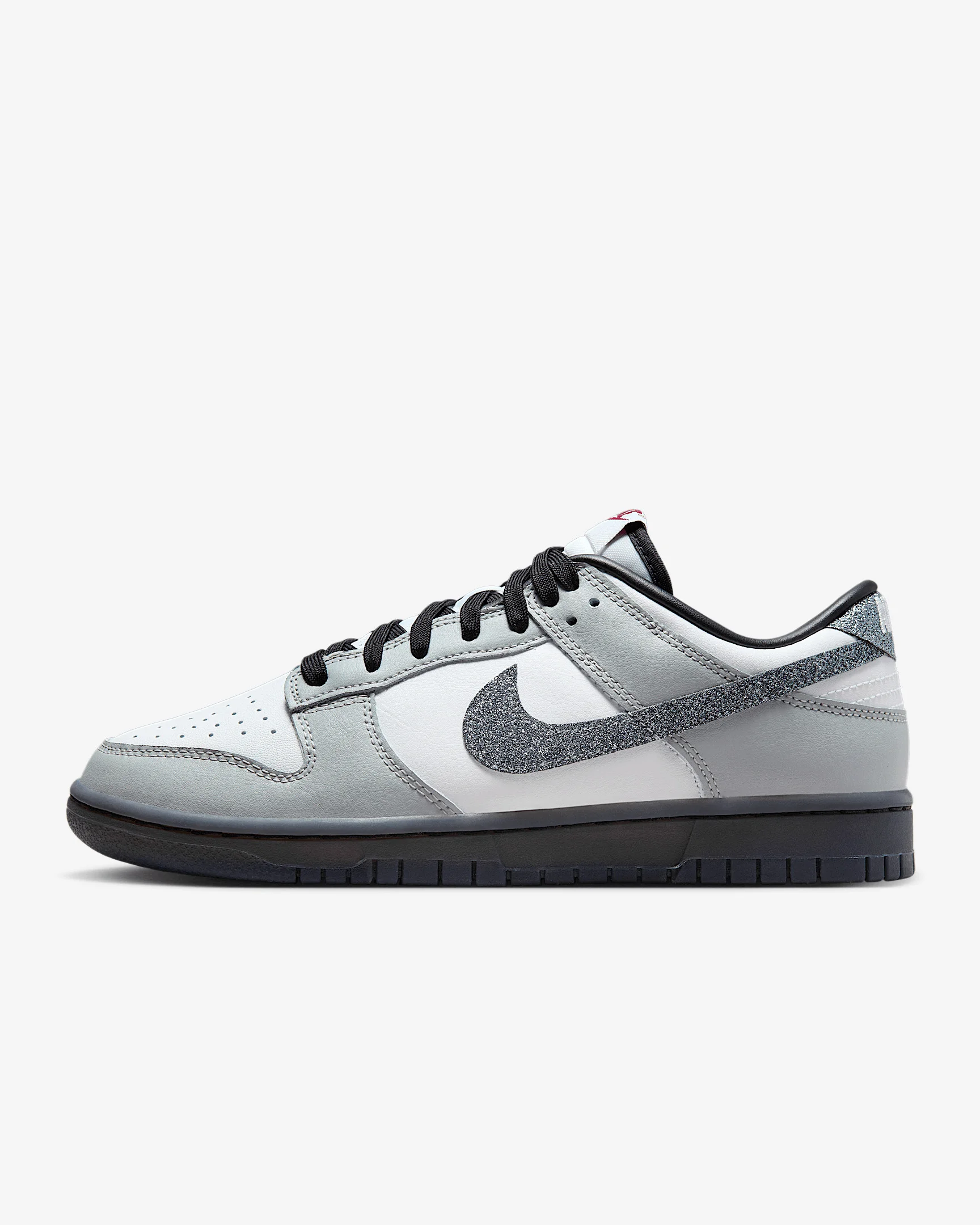 You can always count on a classic. The '80s legend returns with an extra dash of shine. This iteration pairs the Dunk's iconic color blocking with premium materials and plush padding for a subtle luster that lets you take your style anywhere. Benefits - Leather upper with durable overlays soften and gain vintage character with wear. - Foam midsole offers lightweight, responsive cushioning. - Rubber outsole with classic pivot circle adds durable traction and heritage style. Product Details - Shown: White/White/Light Smoke Grey/Multi-Color - Style: HQ3462-191