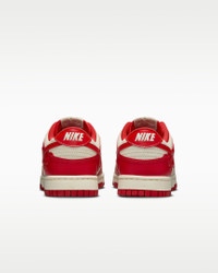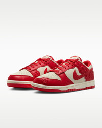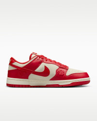 You can always count on a classic. The Dunk Low pairs its iconic color blocking with premium materials for game-changing comfort that lasts. Plus, embossed roses add an elevated touch. The possibilities are endless—how will you wear your Dunks? Benefits - Synthetic leather and suede upper softens and gains vintage character with wear. - Foam midsole offers lightweight, responsive cushioning. - Rubber outsole with classic pivot circle adds durable traction and heritage style. Product Details - 2 sets of laces - Padded collar - Perforated toe box - Shown: Coconut Milk/Pale Ivory/Black/University Red - Style: HF1986-100