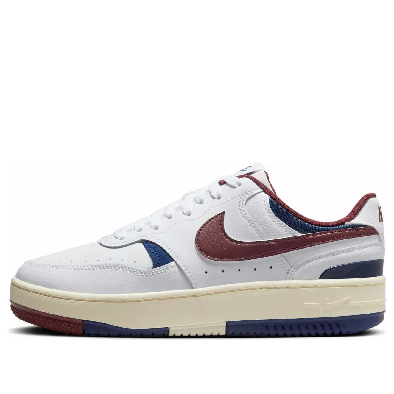 PRODUCT INFORMATION Model No: DX9176-115 Closure: Lacing Release Date: 2024-12-11 Upper Material: Leather Thickness: Regular Sole Colorway: White/Dark Team Red/Blue Void/Coconut Milk Toe Type: Round Toe Upper: Low Top Sole Material: Rubber Sole Color: white Series: Gamma Force Nickname: White Dark Team Red Blue Occasion: lifestyle