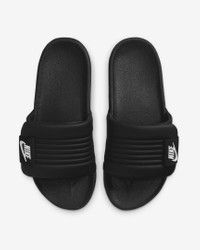 Post game, errands and more—adjust your comfort on the go. The adjustable, padded strap lets you perfect your fit, while the lightweight foam midsole brings first-class comfort to your feet. Benefits - Contoured footbed cradles your foot to help keep it in place. - Dual-density foam provides lightweight cushioning. - Hook-and-loop strap is lined with soft fabric for extra comfort. - Logo label doubles as a pull tab to help open the strap. - Outsole features a pivot circle pattern for durability and traction. Product Details - Shown: Black/Black/White - Style: DV1033-002