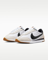 The Nike Pacific takes inspiration from old-school styles to give you a new kind of low-profile look. Leather and suede are topped with a puffed Swoosh logo, and a herringbone sole with flex grooves adds a '70s vibe with a twist. Benefits - Leather and suede create a layered look that lasts. - Wide collar opening captures the proportions of '70s running style. - Herringbone gum sole with flex grooves provides grip from heel to toe. Product Details - Puffed Swoosh logo - Foam midsole - Shown: White/Platinum Tint/Safety Orange/Black - Style: HM4771-105