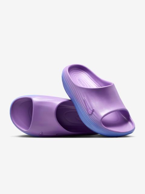 Give your feet a rest. Made with soft and responsive ReactX foam, the Rejuven8 uses some of our best tech to create recovery slides you’ll look forward to wearing. Benefits - ReactX upper and midsole surround your feet in soft, responsive comfort. - Sticky rubber outsole adds grip even on slick surfaces. - Extra room at the forefoot helps accommodate various foot widths. Product Details - Shown: Rose Gold/Rose Gold/Rose Gold - Style: HV4484-601