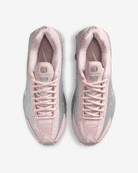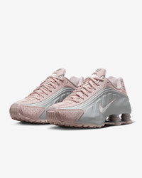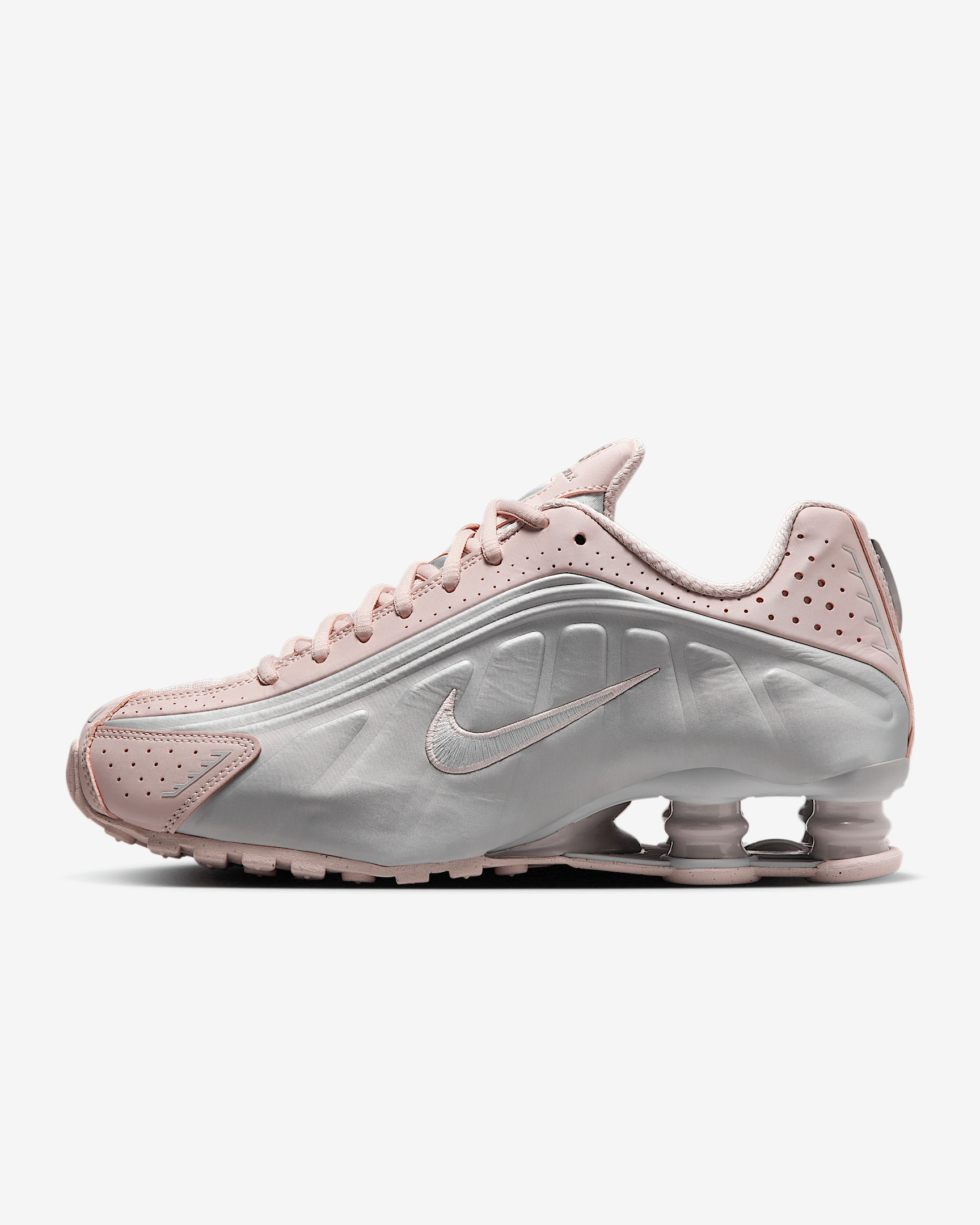 A recrafted version of the 2001 icon, the Nike Shox R4 replicates the original with its synthetic and textile upper, design lines and laser perforations. Nike Shox cushioning distributes weight to maximize comfort and provide a performance-inspired look. Benefits - Originally designed to support the stride of runners, Nike Shox columns provide responsive cushioning. - Upper is a near-exact replica of the original 2001 Nike Shox. - Modified, circular waffle outsole gives traction. - Laser perforations throughout provide ventilation. Product Details - Not intended for use as Personal Protective Equipment (PPE) - Shown: Barely Rose/Metallic Platinum - Style: AR3565-600