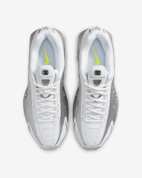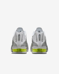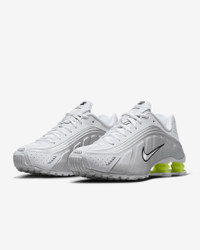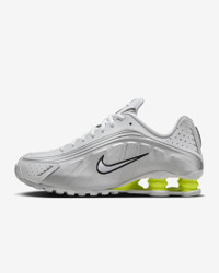 A recrafted version of the 2001 icon, the Nike Shox R4 replicates the original with its synthetic and textile upper, design lines and laser perforations. Nike Shox cushioning distributes weight to maximize comfort and provide a performance-inspired look. Benefits - Originally designed to support the stride of runners, Nike Shox columns provide responsive cushioning. - Upper is a near-exact replica of the original 2001 Nike Shox. - Modified, circular waffle outsole gives traction. - Laser perforations throughout provide ventilation. Product Details - Not intended for use as Personal Protective Equipment (PPE) - Shown: White/Metallic Silver/Volt/White - Style: AR3565-102