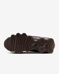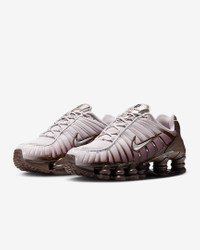 The Nike Shox TL takes mechanical cushioning to the next level. A recrafted version of the 2003 icon, this edition features breathable mesh and full-length Nike Shox technology to give you both optimal impact absorption and a bold look. Benefits - Nike Shox technology combines resilient, flexible columns with moderator plates for outstanding cushioning that compresses and regains its shape. - Combination upper with full TPU cage is near-exact replica of the 2003 Nike Shox TL. - Molded overlays throughout midfoot provide support and snug fit. - TPU plate in the heel between the foam midsole and Nike Shox technology helps provide lateral stability and support. Product Details - Shown: Baroque Brown/Platinum Violet/Metallic Silver - Style: IB7699-200