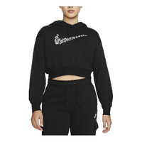 (WMNS) Nike Sportswear Logo Embroidered Loose Fleece Hoodie Black DO7257-010