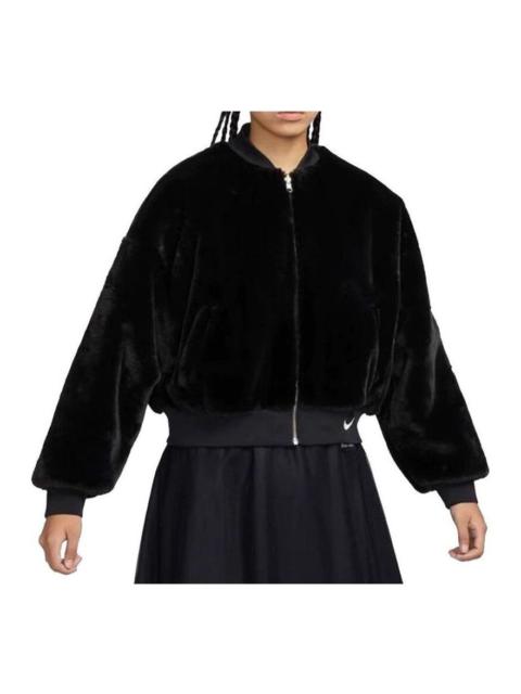 (WMNS) Nike Sportswear Reversible Faux Fur Bomber Jacket 'Black' FB8693-010