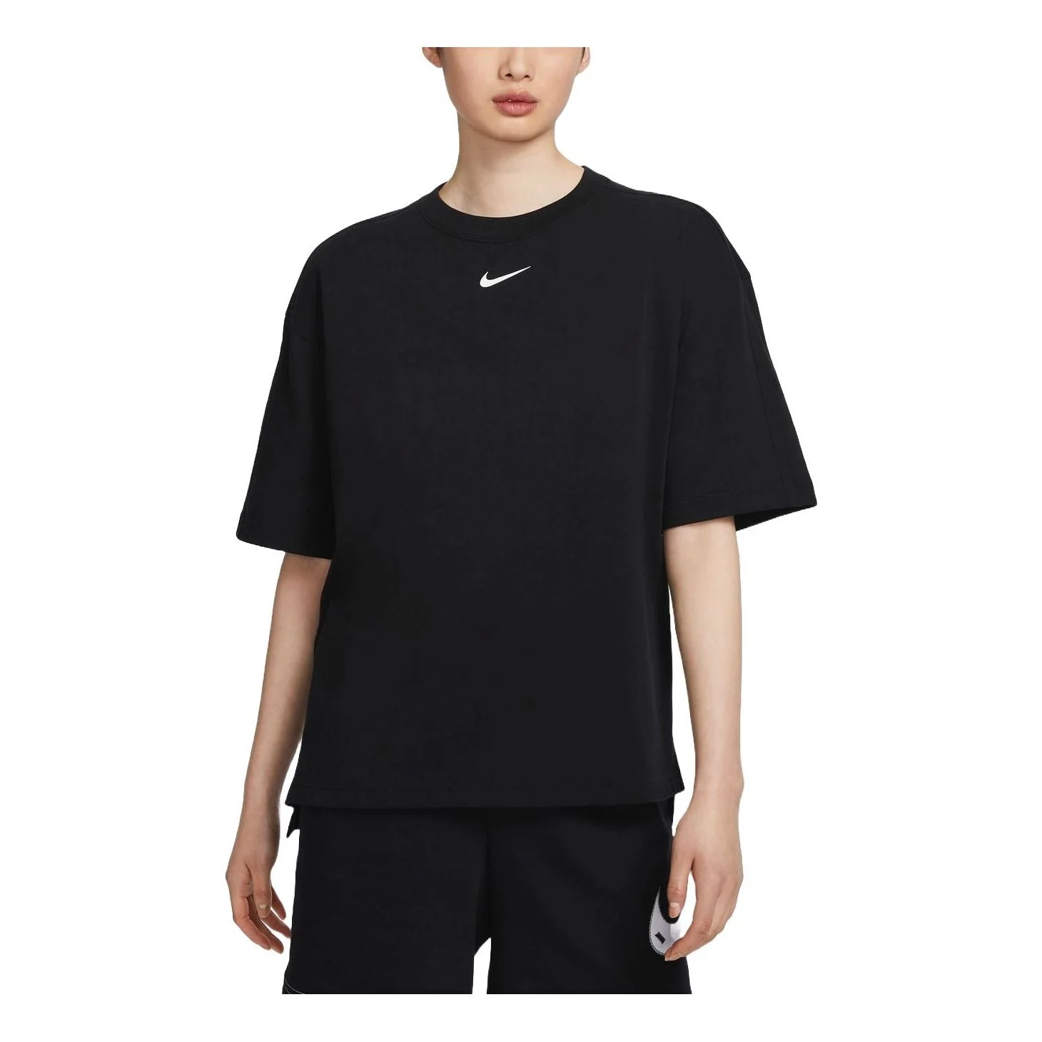 (WMNS) Nike Sportswear Swoosh Oversized T-shirt Asia Sizing 'Black White' HJ3947-010