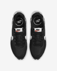 Retro gets modernized with these sleek sneaks inspired by the Nike Daybreak. Era-echoing suede and nylon are paired in complementary colors, and the updated wedge midsole gives you an extra lift. Style, comfort, iconic Waffle outsole—this is a perfect new addition to your daily rotation. Benefits - Swoosh wraps around your heel to form a pull tab, adding aesthetic appeal to on-and-off functionality. - Lifted foam midsoles give you an elevated look and all-day comfort. - Soft suede overlays nod to vintage materials while textile underlays add durability. - Rubber Waffle outsole adds durable traction and heritage style. Product Details - Padded collar - Exposed foam tongue - Traditional lacing - Perforations on heel - Shown: Black/Orange/Clear/White - Style: DH9523-002 SIZE & FIT Fits small; we recommend ordering a half size up