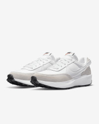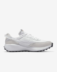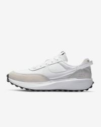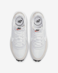 Retro gets modernized with these sleek sneaks inspired by the Nike Daybreak. Era-echoing suede and nylon are paired in complementary colors, and the updated wedge midsole gives you an extra lift. Style, comfort, iconic Waffle outsole—this is a perfect new addition to your daily rotation. Benefits - Swoosh wraps around your heel to form a pull tab, adding aesthetic appeal to on-and-off functionality. - Lifted foam midsoles give you an elevated look and all-day comfort. - Soft suede overlays nod to vintage materials while textile underlays add durability. - Rubber Waffle outsole adds durable traction and heritage style. Product Details - Padded collar - Exposed foam tongue - Traditional lacing - Perforations on heel - Shown: White/Black/Orange/White - Style: DH9523-100 SIZE & FIT Fits small; we recommend ordering a half size up