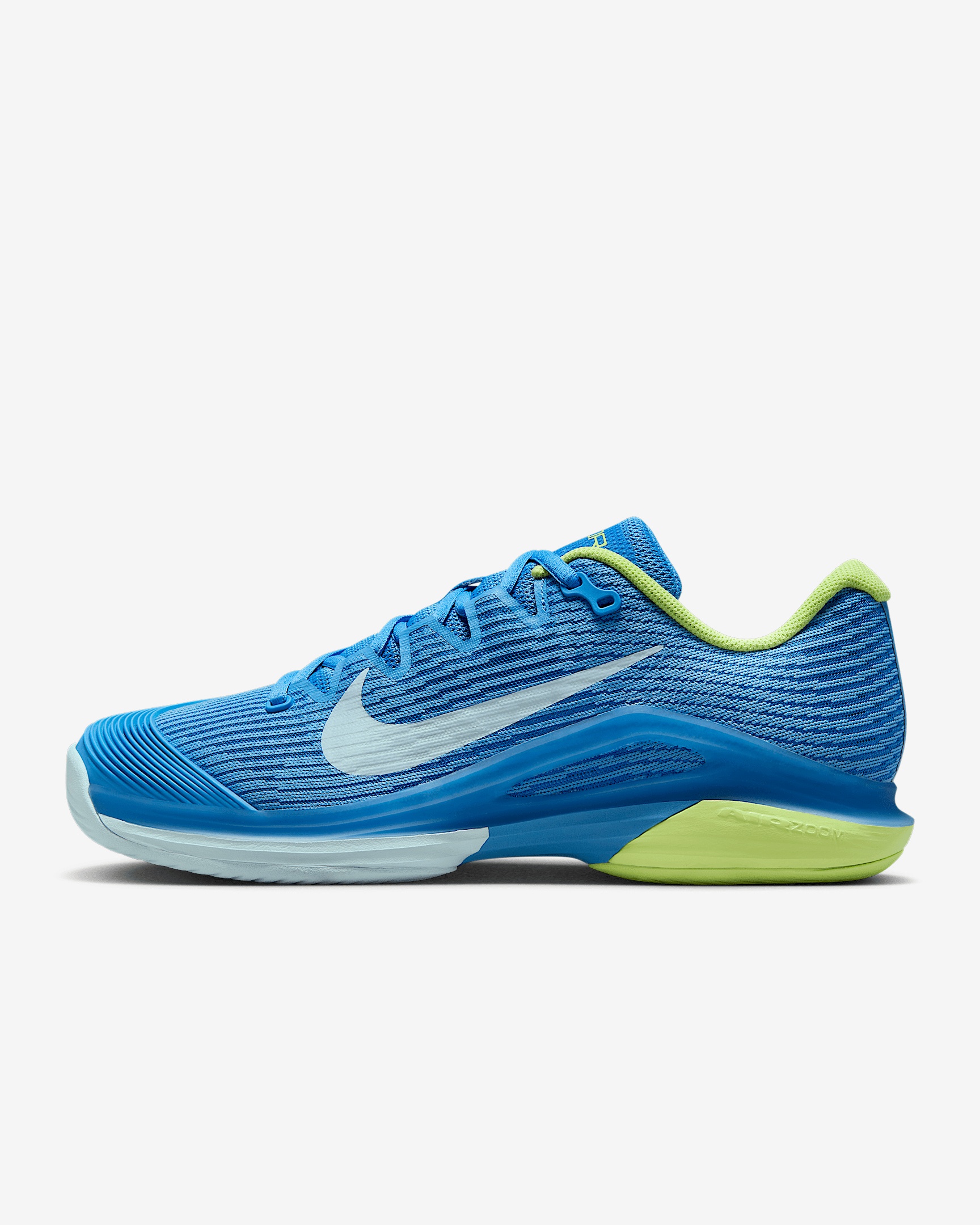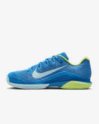 Get to every single ball with blistering speed in the Vapor 12. With a reworked upper and traction pattern, it's lighter and more responsive than the 11. And we brought back Air Zoom cushioning, so you can always be on the attack. More Benefits - Full midfoot fit band allows you to pull the laces tighter to enhance the fit and enable faster cuts. - Midsole foam in between the plastic and rubber, which wasn’t on the Vapor 11, helps keep you light on your feet. Product Details - Designed for wear on hard court surfaces - Cushioned insole - Shown: Blue Beyond/Light Lemon Twist/Star Blue/Glacier Blue - Style: FV5554-400