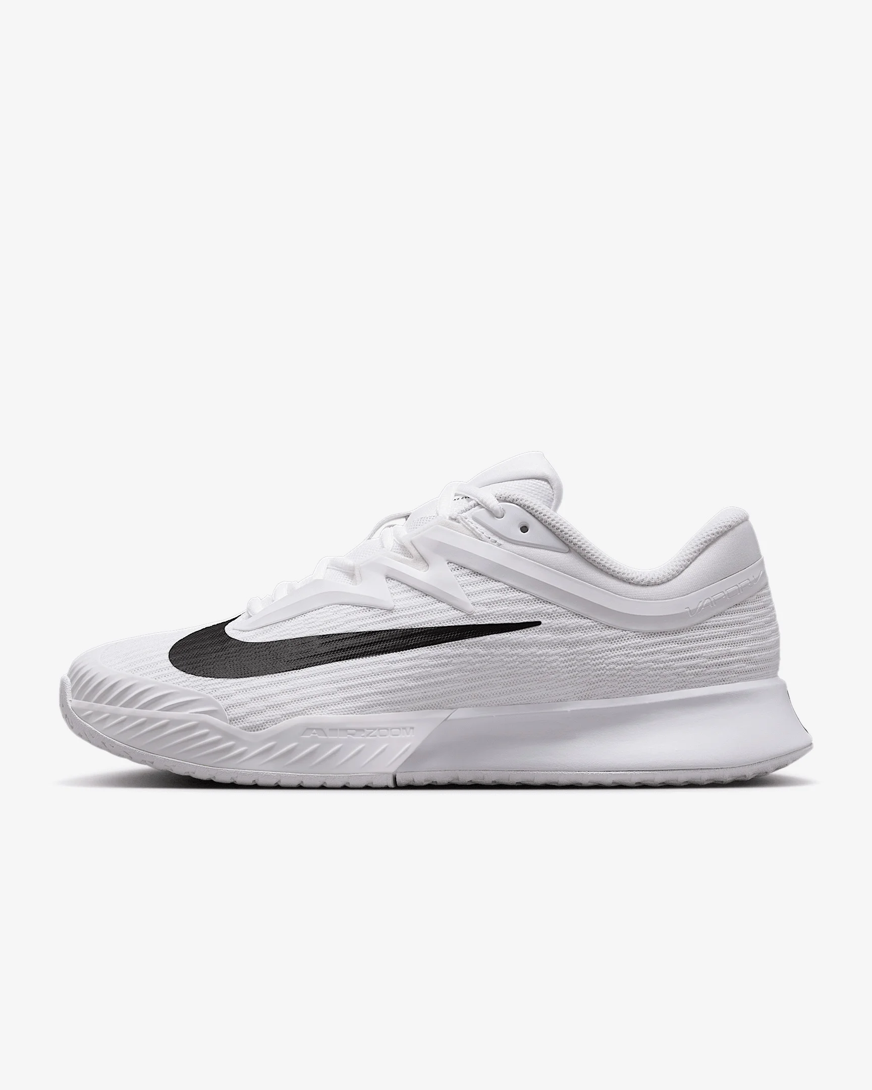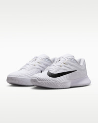 The Vapor Pro 3 provides bounce and burst from side-to-side movements to scrambles to the net, so you can stay in the point. With springy Air Zoom cushioning and a new rubber compound that makes the shoe lighter than previous Vapors, it’s primed to last to match point. Product Details - Designed for wear on hard court surfaces - Durable, breathable mesh on upper - Rubber toe tip - Shown: White/Black - Style: FZ2158-101 SIZE & FIT Fits large; we recommend ordering a half size down