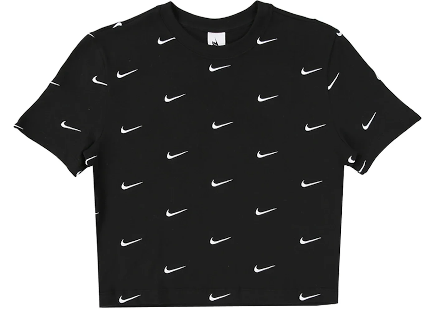 Nike All Over Swoosh Logo Cropped T-Shirt Black