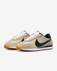 The Nike Pacific takes inspiration from old-school styles to give you a new kind of low-profile look. Leather and suede are topped with a puffed Swoosh logo, and a herringbone sole with flex grooves adds a '70s vibe with a twist. Benefits - Leather and suede create a layered look that lasts. - Wide collar opening captures the proportions of '70s running style. - Herringbone gum sole with flex grooves provides grip from heel to toe. Product Details - Puffed Swoosh logo - Foam midsole - Shown: Grain/Gum Light Brown/Safety Orange/Black - Style: HM4771-201