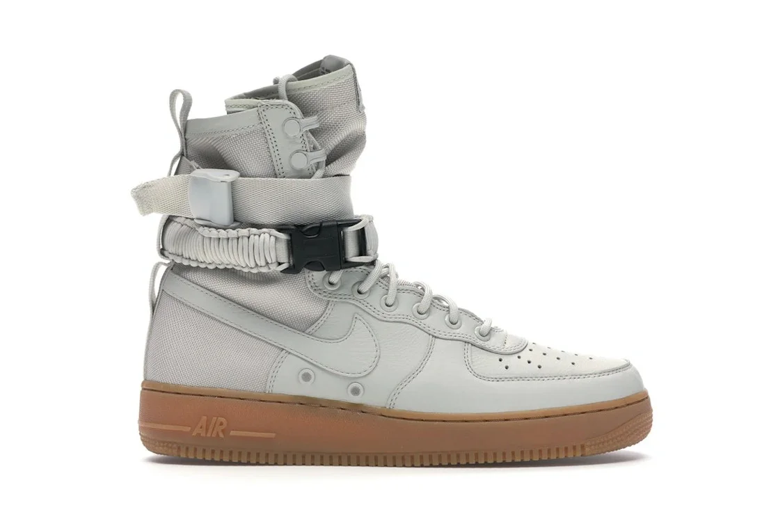 The Nike SF Air Force 1 High Light Bone W is a stylish and functional shoe that combines the classic Air Force 1 silhouette with modern design elements. The shoe features a light bone colorway with a durable leather and ballistic nylon upper, as well as a high-top design for added support and protection. The shoe also includes a dual-zipper system for easy on and off, as well as a rubber outsole for traction and durability. Released on November 1, 2017, the Nike SF Air Force 1 High Light Bone W retails for $180 and is a must-have for sneaker enthusiasts looking for a versatile and stylish shoe that can be worn in a variety of settings. - Style 857872-004 - Colorway Light Bone/Light Bone-Gum Medium Brown - Retail Price 180 - Release Date 2017-11-01 - Featured false - Product Line Nike Air Force