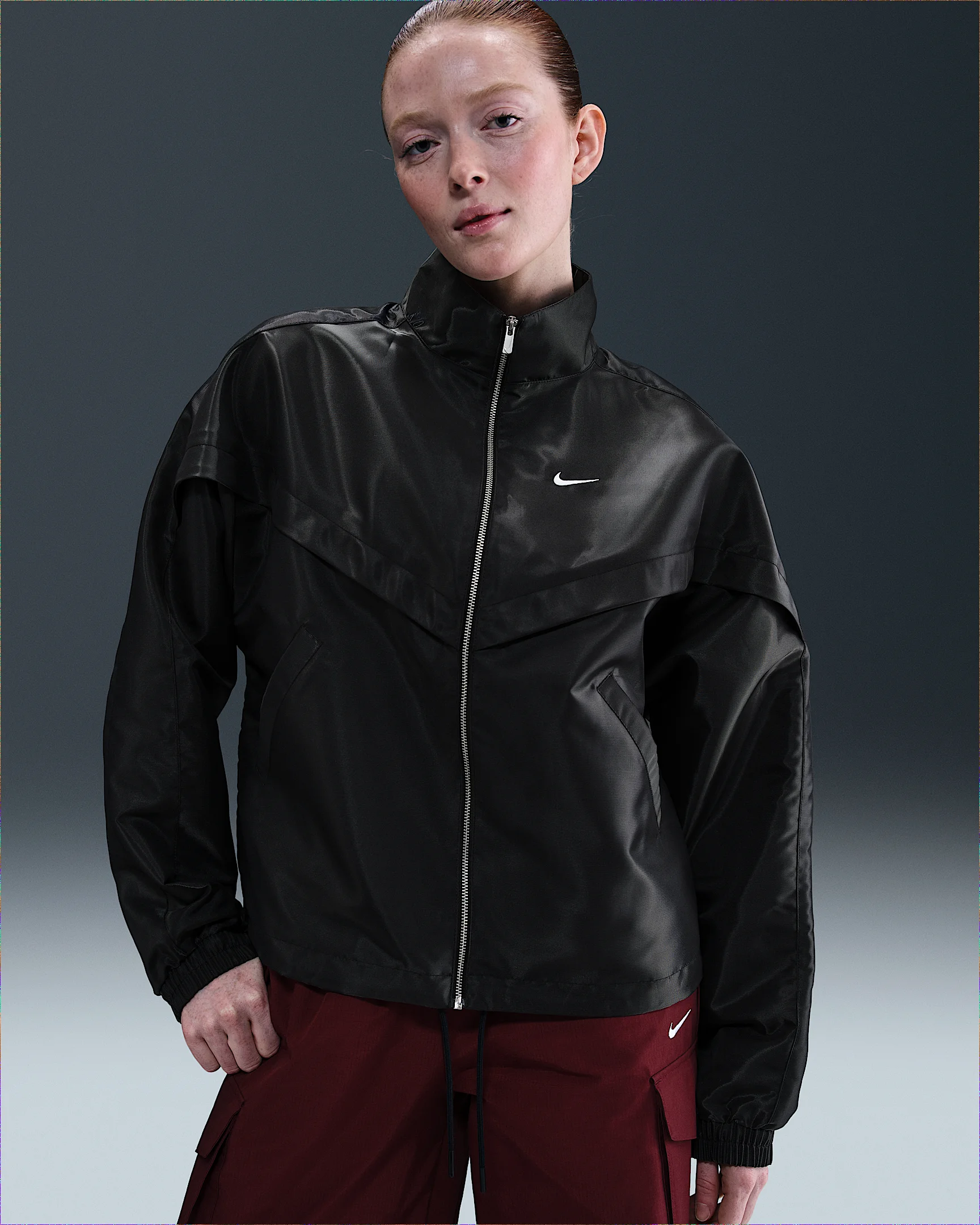 Updating the classic, we subbed the elastic hem for a drawcord to let you control the fit at the waist. We kept the water-repellent finish and the classic chevron lines that tie the look to the original Windrunner jackets. Benefits - Lightweight, water-repellent twill gives you both structure and function. - Chevron design lines connect this jacket to our iconic track jacket look. - Woven lining adds a touch of warmth and a smooth interior. Product Details - Body/Lining: 100% polyester - Embroidered Swoosh logo - Elastic at cuffs - Machine wash - Imported - Shown: Black/White - Style: HV2467-010 SIZE & FIT Model is wearing size S and is 5′7″170cm Loose fit: roomy and relaxed