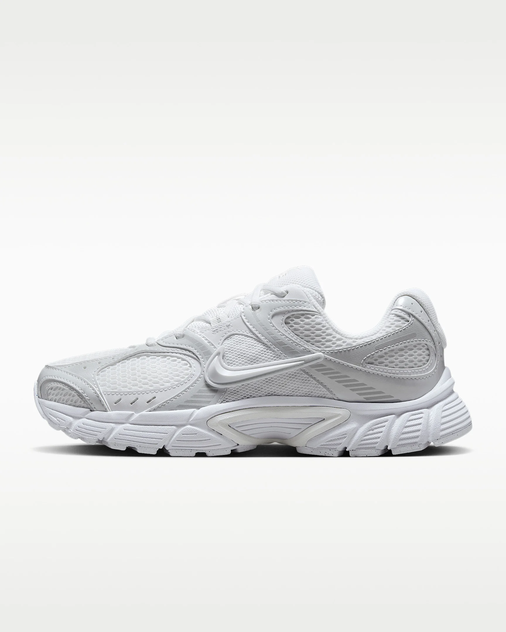 Tackle the everyday in a shoe that matches comfort with style. Staying true to its Y2K roots, the V5 RNR has a foam midsole that's chunky yet lightweight. Plus, metallic details and a 3D Swoosh logo elevate this retro runner. Benefits - Mesh upper with synthetic leather overlays is breathable and durable. - Plush collar lining and foam midsole provides all-day comfort. - Rubber outsole with '00s-inspired grooves adds great traction. Product Details - 3D Swoosh logo - Not intended for use as Personal Protective Equipment (PPE) - Shown: White/Black/Metallic Silver/White - Style: HQ7901-101