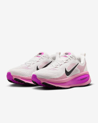 Maximum cushioning in the Vomero provides a comfortable ride for everyday runs. Our softest, most cushioned ride has lightweight ZoomX foam stacked on top of responsive ReactX foam in the midsole. Plus, a redesigned traction pattern offers a smooth heel-to-toe transition. Product Details - Weight: Approx. 263g/9.3oz (Women’s US 8) - Heel-to-toe drop: 10mm - MR-10 Last - Our best, most consistent fit - Not intended for use as Personal Protective Equipment (PPE) - Shown: Summit White/Elemental Pink/Red Plum/Black - Style: HM6804-105