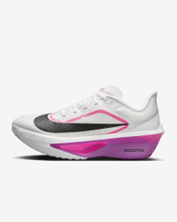 The Zoom Fly 6 is with you every step of your run. Lighter than the Zoom Fly 5, its responsive ZoomX foam adds energy return to each stride, while a carbon fiber Flyplate helps propel you to the finish line. Product Details - Weight: Approx. 214g/7.5oz (Women's US 8) - Heel-to-toe drop: 8mm - Reflective details - Not intended for use as Personal Protective Equipment (PPE) - Shown: White/Vivid Grape/Hyper Pink/Black - Style: FN8455-101 SIZE & FIT Fits small; we recommend ordering a half size up