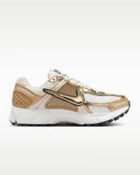 Carve a new lane for yourself in the Zoom Vomero 5—your go-to for complexity, depth and easy styling. The richly layered design includes textiles, leather and gold accents that come together to make one of the coolest sneakers of the season. Benefits - Upper mixes real and synthetic leather for a layered look built to last. - Mesh panels and ventilation ports on the heel keep it light and breathable. - Snappy and responsive, Zoom Air cushioning helps provide a quick-off-the-ground sensation. - Plastic caging on the side creates a supportive feel. - Rubber outsole gives you durable traction. Product Details - Gold Swoosh logo - Reflective details - Not intended for use as Personal Protective Equipment (PPE) - Shown: Photon Dust/Gridiron/Sail/Metallic Gold - Style: HF7723-001