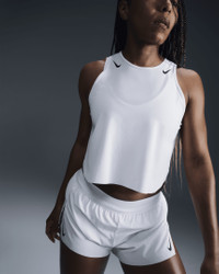Perform your best in this slim-fitting tank top designed with your goals in mind. Advanced engineering and lightweight moisture-wicking fabric help keep you dry and cool as you push the limits. Side slits offer plenty of airflow so you can feel the breeze and focus on your stride. Benefits - Nike Dri-FIT ADV technology combines moisture-wicking fabric with advanced engineering and features to help you stay dry and comfortable. - Side slits offer more freedom in your movements. Product Details - Pleated back - 86% polyester/14% spandex - Machine wash - Imported - Shown: White/Black - Style: FN2713-100 SIZE & FIT Sm fit: sleek and tailored