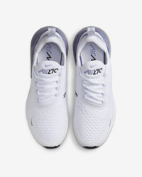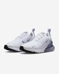 Nike's first lifestyle Air Max brings you style, comfort and big attitude in the Nike Air Max 270. The design draws inspiration from Air Max icons, showcasing Nike's greatest innovation with its large window and fresh array of colors. Benefits - The Max Air 270 unit delivers unrivaled, all-day comfort. - Woven and synthetic fabric on the upper provides a lightweight fit and airy feel. - The foam midsole feels soft and comfortable. - The stretchy inner sleeve and booty-like construction creates a personalized fit. - Rubber on the outsole adds traction and durability. Product Details - Mesh details for an airy feel - Synthetic and textile - Pull tab - Shown: White/Football Grey/White/Blue Whisper - Style: AH6789-121 SIZE & FIT Fits small; we recommend ordering a fl size up