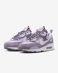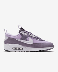 The Nike Air Max 90 Futura reimagines the icon of Air through your eyes—from design to testing to styling. Sawtooth edging around the toe and a partially floating Swoosh deliver skillfully crafted luxury. Plush padding around the ankle mixes with trusted Air cushioning to bring you first-class comfort. It's playful, comfortable, sporty and whatever else you want it to be. More Benefits - Padded, low-top collar looks sleek and feels great. - Rubber Waffle outsole adds a heritage look, traction and durability. - Super plush midsole keeps the comfort and '90s look you love. Product Details - Pull tabs on heel and tongue - Shown: Daybreak/Lilac Bloom/Black/Barely Grape - Style: DM9922-500 SIZE & FIT Fits small; we recommend ordering a half size up