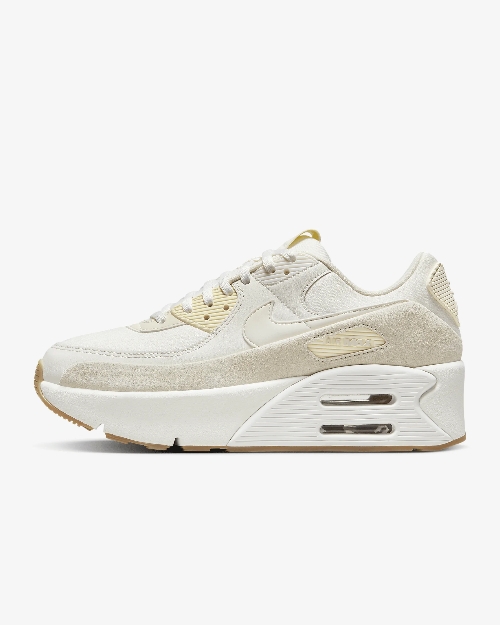 The Air Max 90 LV8 takes your favorite silhouette to the next level with stacked Nike Air units. Not only do you get extra cushioning, but you get extra height creating the perfect platform that's easy to style. Layers of mixed materials add texture and dimension, creating an elevated look you’ll be reaching for again and again. Benefits - Upper mixes leather, textile and suede for a layered look built to last. - Visible Nike Air units are stacked on top of each other for a platform look with plenty of cushioning. - Rubber Waffle outsole delivers durable traction and heritage style. - Padded, low-cut collar looks sleek and feels great. Product Details - Foam midsole - Rubber outsole - Shown: Sail/Phantom/Light Orewood Brown/Sail - Style: FD4328-100
