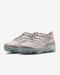Breathe in. Breath out. This Air is better than that. With the first 1-piece Air unit to run the entire length of a shoe, the Air VaporMax 2023 Flyknit lets you walk on unbelievable cushioning. And up top, stretchy and supportive Flyknit keeps it breezy and light. Bonus—it's made with at least 20% recycled materials by weight. Now that's fresh! Benefits - As the first 1-piece Air unit to run the entire length of a shoe, it allows for smoother transitions and adds unbelievable cushioning. - Flyknit upper uses stretchy yarns for a breathable and supportive fit that feels as light as air. - Seamless collar sculpts the ankle for a sporty look that feels great, while padding on heel adds to the comfort. - Translucent rubber outsole adds durability and traction. Product Details - Traditional lacing - Shown: Platinum Violet/Phantom/Metallic Silver/White - Style: DV6840-003 SIZE & FIT Fits small; we recommend ordering a half size up