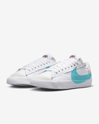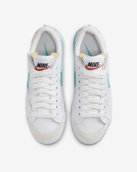 They say, "Don't fix what works." We say, "Perfect it." This streetwear superstar gets revamped with jumbo-sized details. Harnessing the old-school look you love, the Nike Blazer Low '77 Jumbo features an oversized Swoosh design, extra-wide laces and thicker stitching. Benefits - Jumbo laces are much easier to tie and add a bold look to any outfit. - Capturing the essence of the classic Blazer, the stitched leather overlays and soft suede accent on the toe add heritage hoops style. - Extra-thick thread for the stitching adds a bold, defiant touch. - Raised herringbone pattern on the rubber outsole exaggerates the classic look while providing traction. Product Details - Exposed foam tongue - Jumbo laces - Thick thread stitching - Oversized woven label - Shown: White/Summit White/Team Orange/Dusty Cactus - Style: DQ1470-107