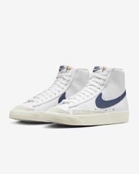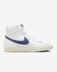 Styled for the ‘70s. Loved in the ‘80s. Classic in the ‘90s. Ready for the future. The Nike Blazer Mid ’77 delivers a timeless design that’s easy to wear. Its unbelievably crisp leather upper breaks in beautifully and pairs with bold retro branding and luscious suede accents for a premium feel. Exposed foam on the tongue and a special midsole finish make it look like you’ve just pulled them from the history books. Go ahead, perfect your outfit. Benefits - Leather and synthetic upper looks crisp and is easy to style. - Vintage treatment on the midsole adds the perfect touch of retro. - Autoclave construction fuses the outsole to the midsole for a streamlined look that’s timeless. - Exposed foam on the tongue provides a throwback look. - Non-marking, solid-rubber outsole with herringbone pattern for excellent traction and durability that leaves the imprint you love. - Shown: White/Sail/Diffused Blue - Style: CZ1055-125 SIZE & FIT For easier entry, we recommend unlacing the top 4 eyelets and sghtly loosening the laces farther down