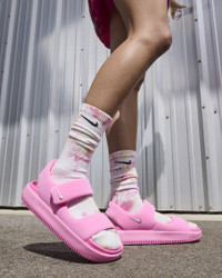 Enjoy a calm, comfortable experience—no matter where your day off takes you. Made with soft yet responsive foam, these versatile sandals feature an oversized design that’s easy to wear. And the top strap is adjustable to give you that perfect fit. Whether you’re lounging on the couch, hanging in the city or vacationing on the coast, do it in effortless style. Benefits - Contoured design is made from a single piece of foam for a smooth, seamless feel. - Top strap has a hook-and-loop closure, making it easy to take on and off. - Textured footbed provides grip to help keep your feet in place. - Outer shell is made from water-friendly foam that is easy to clean. - Rubber outsole gives you excellent traction even on slippery surfaces. - Shown: Hyper Pink/Hyper Pink/Metallic Silver - Style: FJ6043-600