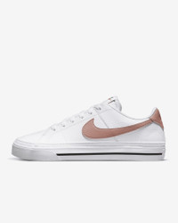 Honoring a history rooted in tennis culture, the Nike Court Legacy Next Nature brings you a time-tested staple in a design that's made from at least 20% recycled materials by weight. Its synthetic leather and retro design let you blend sport and fashion. Do good by looking good. Benefits - Whenever you see the Nike Sunburst or the name Next Nature (NN), you see one more step on our journey toward zero carbon and zero waste. - Synthetic leather gives you high-quality durability and comfort. - Full-length rubber outsole with herringbone pattern delivers multi-surface traction. Product Details - Canvas trim - Padded collar - Shown: White/Team Orange/Black/Rose Whisper - Style: DH3161-103 SIZE & FIT Fits small; we recommend ordering a half size up