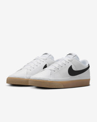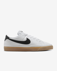 Honoring a history rooted in tennis culture, the Nike Court Legacy Next Nature brings you a time-tested staple in a design that's made from at least 20% recycled materials by weight. Its synthetic leather and retro design let you blend sport and fashion. Do good by looking good. Benefits - Whenever you see the Nike Sunburst or the name Next Nature (NN), you see one more step on our journey toward zero carbon and zero waste. - Synthetic leather gives you high-quality durability and comfort. - Full-length rubber outsole with herringbone pattern delivers multi-surface traction. Product Details - Canvas trim - Padded collar - Shown: White/Gum Yellow/Volt/Anthracite - Style: DH3161-109 SIZE & FIT Fits small; we recommend ordering a half size up