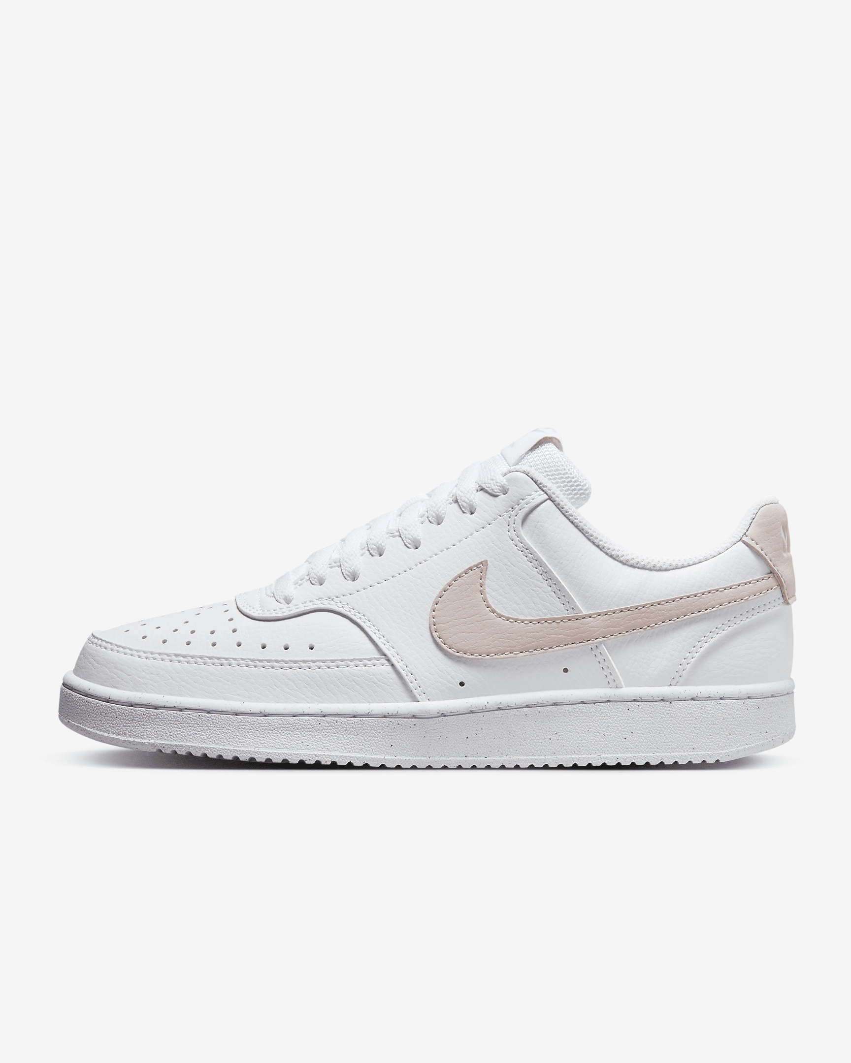In love with the classic look of '80s basketball but have a thing for the fast-paced culture of today's game? Meet the Nike Court Vision Low Next Nature. Made from at least 20% recycled materials by weight, its crisp upper and stitched overlays are inspired by the days of hook-shots and tube socks. The padded collar and rubber outsole bring comfort and traction for your world. Benefits - Made with at least 20% recycled material by weight. - Whenever you see the Nike Sunburst or the name Next Nature (NN), you see one more step on our journey toward zero carbon and zero waste. - Using synthetic materials, the design features materials that echo mid-1980s basketball shoes. - Padded, low-cut collar looks sleek and feels great while the perforations on the toe and sides add comfort and breathability. - Vulcanized construction fuses the outsole to midsole for a streamlined look that's durable and comfortable. Product Details - Perforations on the toe and sides - Rubber outsole - Shown: White/Platinum Violet - Style: DH3158-109 SIZE & FIT Fits large; we recommend ordering a half size down