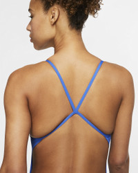 Optimize your range of motion in the Nike Cut Out Swimsuit Tank. It balances medium bust support with minimal bottom coverage for comfort that let's you move freely. A full lining provides a great fit while flat seams help prevent chafing, so it's comfortable to wear for extended lap sessions in the pool. Benefits - Nike HydraStrong fabric provides long-lasting durability, swim after swim. - Medium-support straps balance comfort and support. - An exposed back and minimal bottom cut give you comfort and a flattering look. Product Details - Heat transfer Swoosh design - Body: 53% polyester/47% PBT. Lining: 100% polyester. - Hand wash - Imported - Shown: Game Royal - Style: NESSA018-494 SIZE & FIT Standard fit: easy and traditional