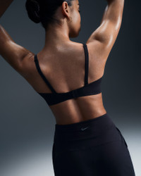 Find your bliss in these lightweight, moisture-wicking pants. The wide, stretchy waistband offers support while sleek, featherlight fabric–with plenty of stretch–flows with you so you can move without boundaries. Tapered legs with ribbed cuffs help keep these relaxed joggers in place no matter how you move. Benefits - Nike Dri-FIT technology moves sweat away from your skin for quicker evaporation, helping you stay dry and comfortable. - Drop-in pockets provide quick storage for your essentials. Product Details - 80% nylon/20% spandex - Mid-rise waistband - 7/8 length - Machine wash - Imported - Shown: Black/Clear - Style: DV9453-010 SIZE & FIT Model is wearing size S and is 5′7″170cm Standard fit: easy and traditional 78 length: hits at ankle