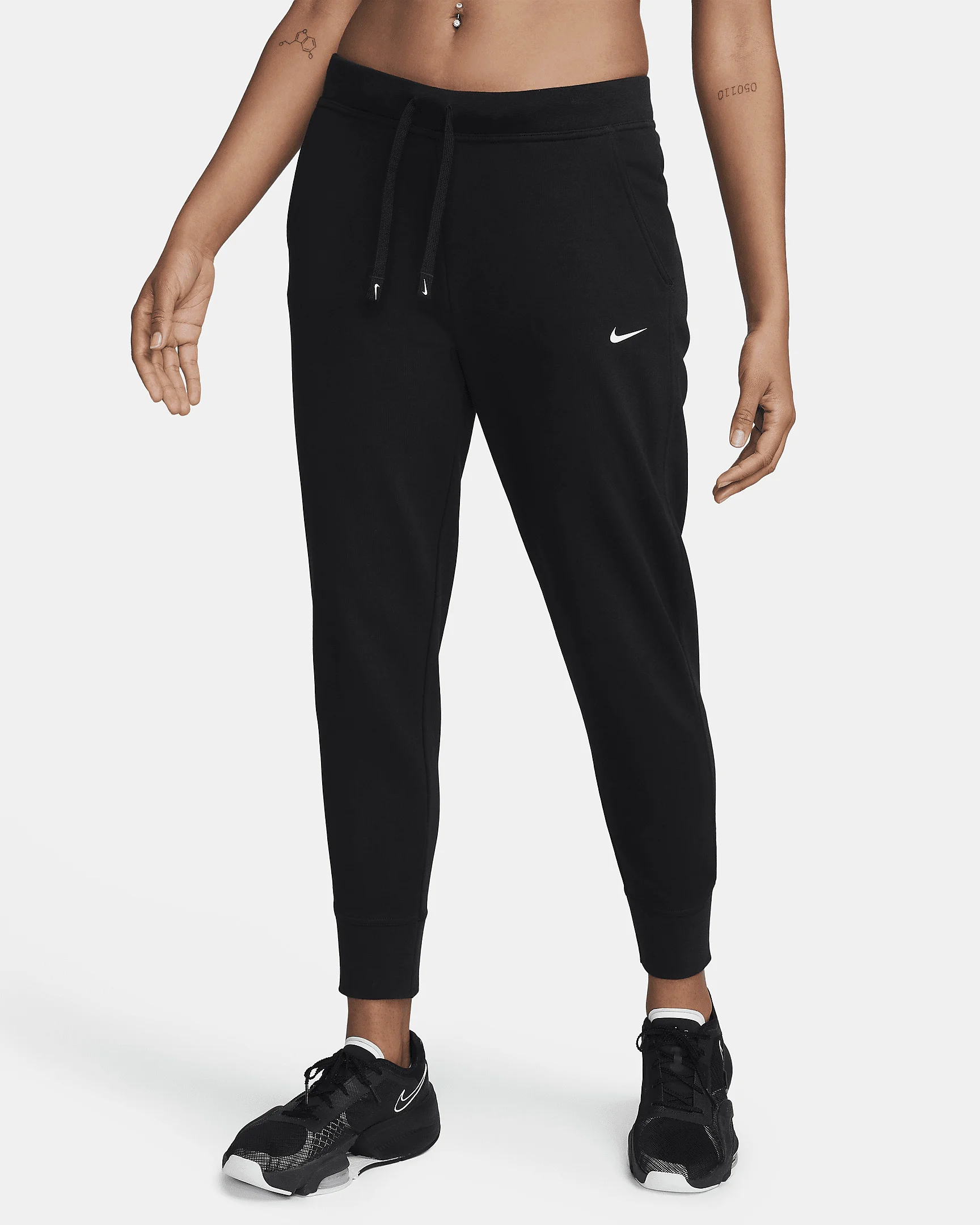 The Nike Dri-FIT Get Fit Pants have sweat-wicking technology to help you stay dry while you work out. French terry fabric feels soft and comfortable. Product Details - Standard fit for a relaxed, easy feel - Pockets - Elastic waistband and drawcord - 61% cotton/39% polyester - Machine wash - Imported - Shown: Black/White - Style: CU5495-010 SIZE & FIT Model is wearing size S and is 5′9″175cm Standard fit: easy and traditional 78 length: hits at ankle