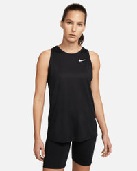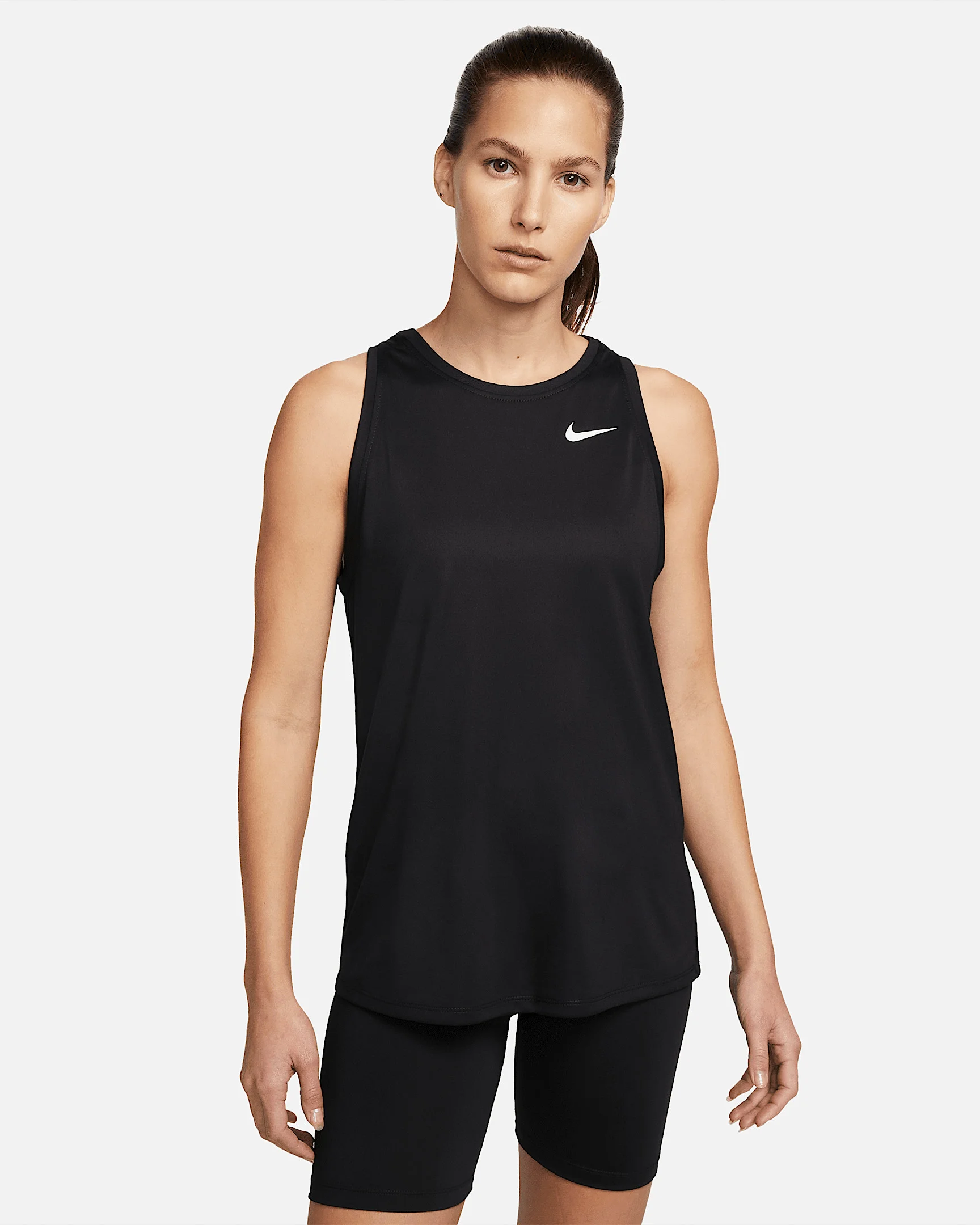 Turn up the heat in the Nike Dri-FIT Tank. Made with sweat-wicking technology to help keep you dry, its sleeveless design and relaxed fit through the body and hips give you a casual look while you power through your workout. Benefits - Nike Dri-FIT technology moves sweat away from your skin for quicker evaporation, helping you stay dry and comfortable. - Fabric feels soft against your skin. Product Details - 100% polyester - Machine wash - Importe - Shown: Black/White - Style: DX0701-010 SIZE & FIT Model is wearing size S and is 5′8″173cm Standard fit: easy and traditional