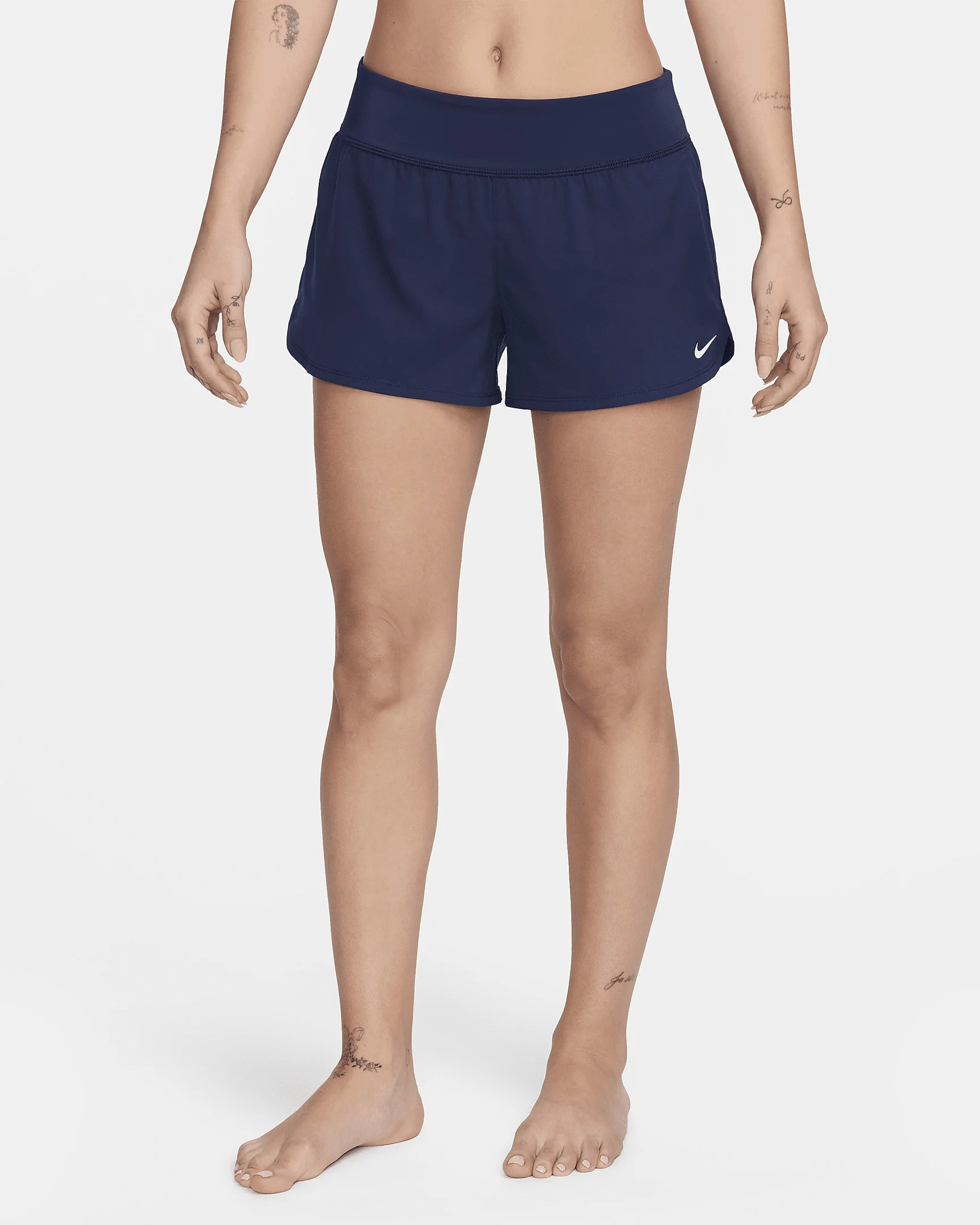 The Nike Essential Board Shorts are made for performance with stretchy fabric that dries quickly to support you as you move. And a longer inseam ensures better coverage. Benefits - High back coverage offers a little extra coverage. - Stretch waistband provides comfort and support. - Concealed zipper pocket holds your small essentials. - Built-in brief adds comfort and support. - Durable, water-repellent finish helps shed excess moisture. Product Details - 2.5" inseam/10.5" outseam - Body and lining: 100% polyester. Trim: 82% nylon/18% chlorine-resistant spandex. - Machine wash - Imported - Shown: Midnight Navy - Style: NESS9200-440