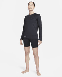 The Nike Essential Hydroguard Swim Shirt makes coverage a breeze, thanks to its quick-drying design and UPF protection. Lightweight, stretch fabric and smooth neck tape give you a comfortable feeling and let you move freely in or out of the water. Benefits - Dri-FIT technology helps you stay dry and comfortable. - Internal neck tape offers a comfortable feel against the skin. - This product provides UVA and UVB protection from the sun in the areas covered by the garment. Any closures must be fastened to give full UPF 40+ protection. It will not protect areas that are exposed. To protect these areas, the use of good quality sunscreen is recommended. Product Details - 91% polyester/9% spandex - Machine wash - Imported - Shown: Black - Style: NESSA386-001 SIZE & FIT Model is wearing size S and is 5′6″168cm Standard fit: easy and traditional