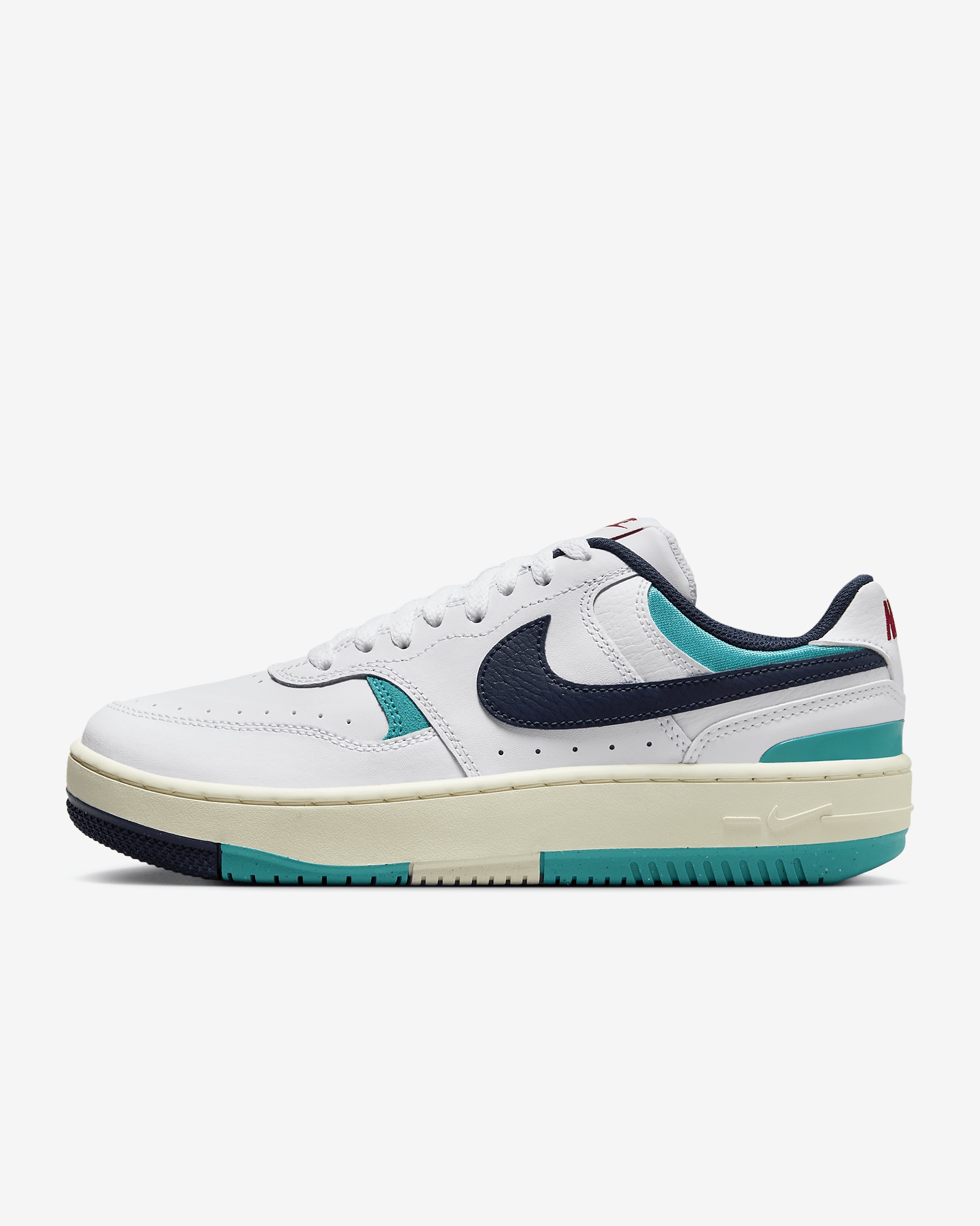 Layers upon layers of dimensional style—that's a force to be reckoned with. Offering both comfort and versatility, these kicks are rooted in heritage basketball culture. Collar materials pay homage to vintage sport while the subtle platform elevates your look, literally. The Gamma Force is forging its own legacy: court style that can be worn all day, wherever you go. Benefits - Leather, suede and mesh layers add a durable and dimensional look to any outfit. - Subtle platform lift gives you just enough height. - Speckled Nike Grind rubber outsole contains at least 5% recycled content. Product Details - Rubber midsole - Rubber outsole - Shown: Dusty Cactus/White/Coconut Milk/Midnight Navy - Style: DX9176-300 SIZE & FIT Fits large; we recommend ordering a half size down