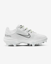 Be quick between the bases in the Nike Hyperdiamond 4 Pro MCS. A flexible plate with molded studs gives you optimal traction to help beat the relay throw from the outfield just in time. Benefits - Leather in the upper with molded details adds durability. - Thick heel counter helps prevent wear and tear. - Molded studs provide traction that flexes with your step. Product Details - Padded collar and tongue - Foam midsole - Shown: White/Photon Dust/Volt/Black - Style: DC8990-103