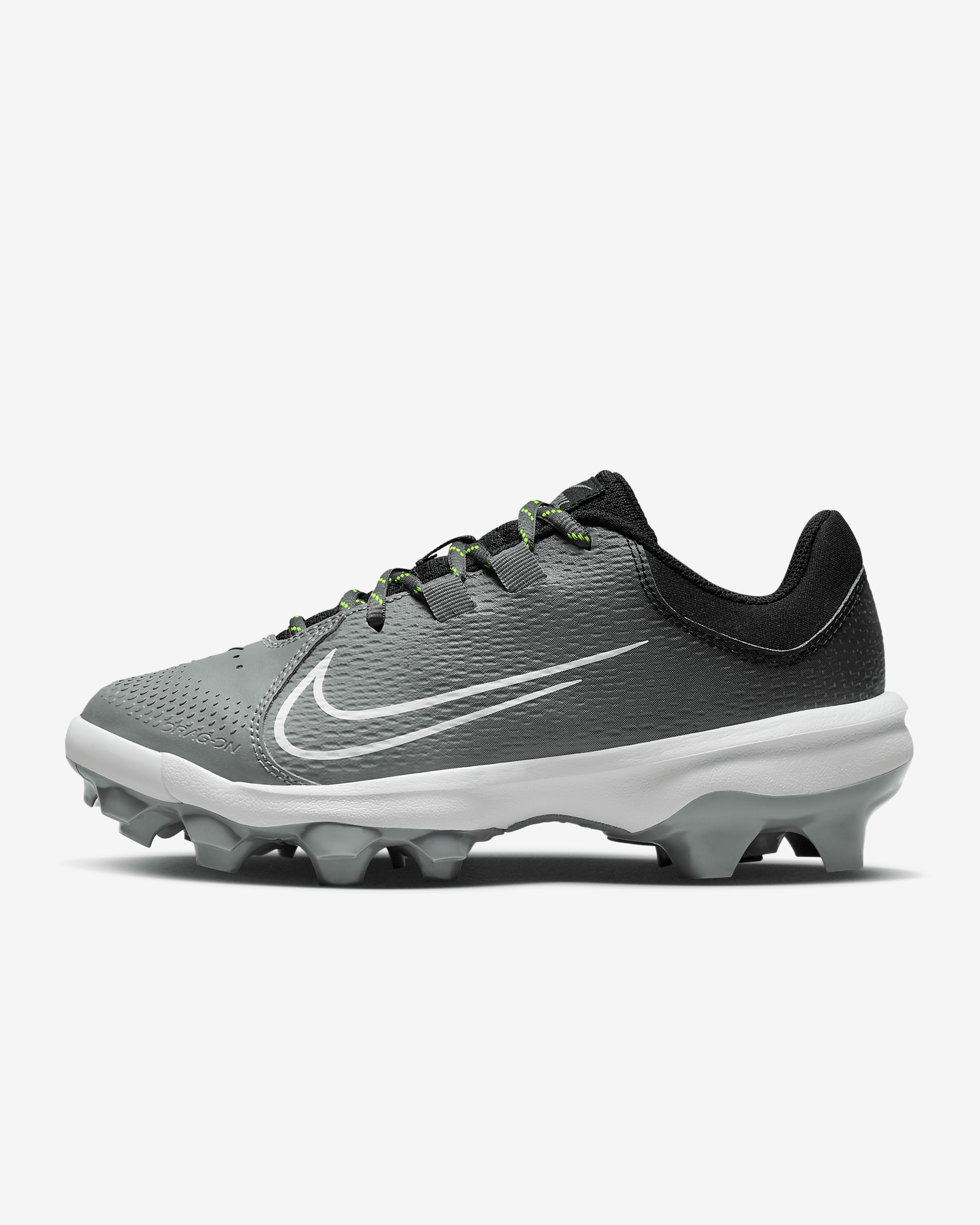 Be quick between the bases in the Nike Hyperdiamond 4 Pro MCS. A flexible plate with molded studs gives you optimal traction to help beat the relay throw from the outfield just in time. Benefits - Leather in the upper with molded details adds durability. - Thick heel counter helps prevent wear and tear. - Molded studs provide traction that flexes with your step. Product Details - Padded collar and tongue - Foam midsole - Shown: Black/Cool Grey/Volt/White - Style: DC8990-001