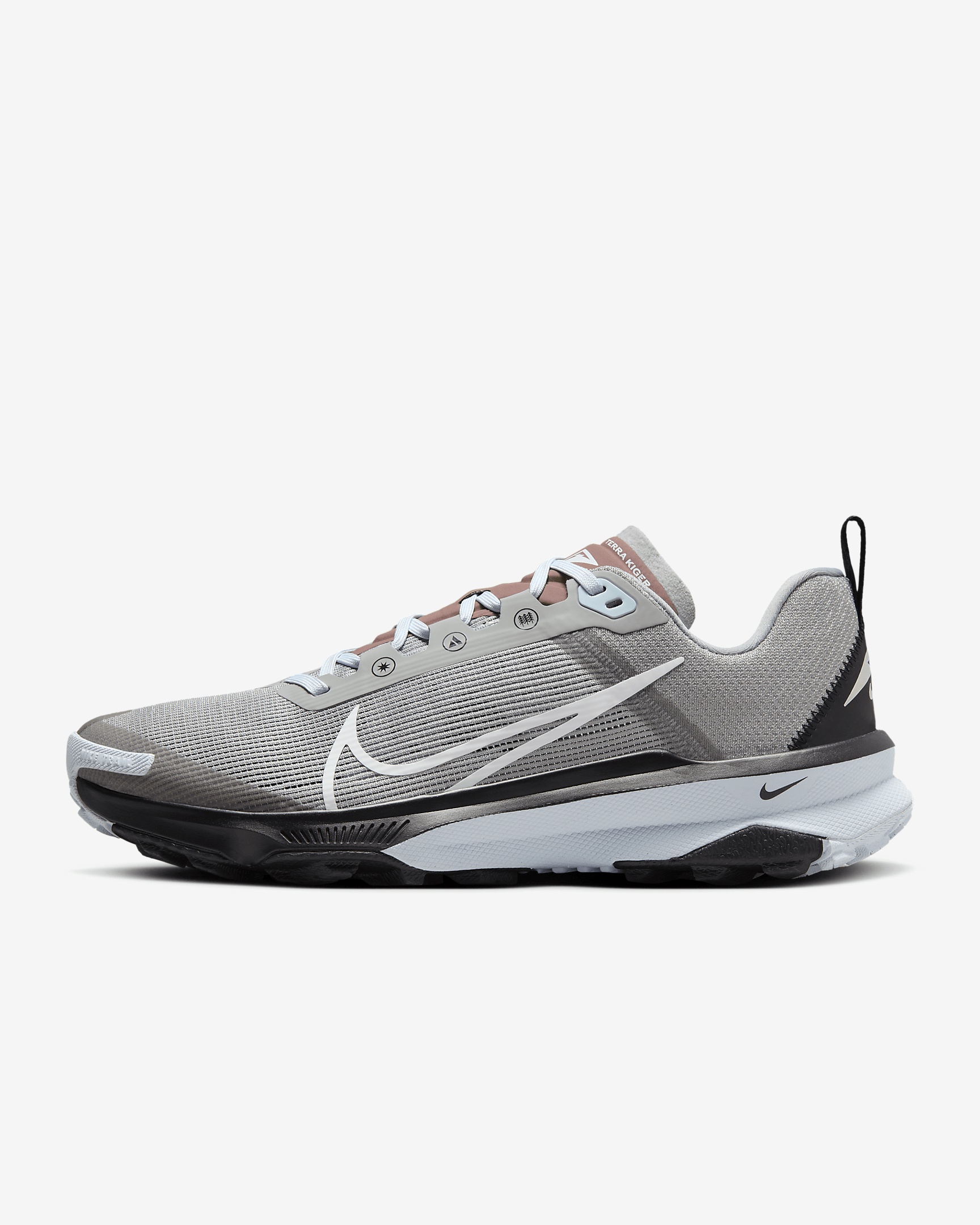When approaching rocky and technical terrain, go with the comfort and speed of the Kiger 9, there for every unexpected twist and tight turn. Equipped with full-length Nike React foam and a revamped breathable upper, this agile, quick trainer helps keep you zigzagging in and out of trails with speed. It’s lower to the ground and lighter than our previous iteration, so that you can handle the off-road path with pace and security. Product Details - Weight: Approx. 236 g (Women's size 8) - Heel-to-toe drop: 4.5 mm - Not intended for use as Personal Protective Equipment (PPE) - Shown: Light Smoke Grey/Black/Glacier Blue/White - Style: DR2694-005