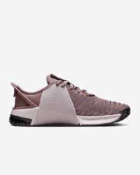 Whatever your "why" is for working out, the Metcon 9 makes it all worth it. We improved on the 8 with a larger Hyperlift plate and added rubber rope wrap. Sworn by some of the greatest athletes in the world, intended for lifters, cross trainers, go-getters and it’s still the gold standard that delivers day after day. This version has Nike EasyOn technology—the flexible heel collapses when you step in then snaps back into place—to help make them easy to put on and take off. More Benefits - Full rubber outsole provides durable traction for dynamic movements like cleans and walking lunges. - Breathable textile has a haptic print, which creates a 3-D effect that adds durability and texture, helping make it easier to keep your shoes clean. Also, it sports flexible, durable support in the toe area, so that when your toes splay when lifting heavy weights, it won’t feel restrictive. Product Details - Shown: Smokey Mauve/Platinum Violet/Black - Style: DZ2540-201