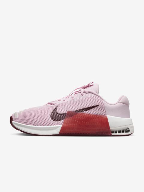 Whatever your "why" is for working out, the Metcon 9 makes it all worth it. We improved on the 8 with a larger Hyperlift plate and added rubber rope wrap. Sworn by some of the greatest athletes in the world, intended for lifters, cross trainers, go-getters and it’s still the gold standard that delivers day after day. More Benefits - Full rubber outsole provides durable traction for dynamic movements like cleans and walking lunges. - Breathable textile has a haptic print, which creates a 3-D effect that adds durability and texture, helping make it easier to keep your shoes clean. Also, it sports flexible, durable support in the toe area, so that when your toes splay when lifting heavy weights, it won’t feel restrictive. Product Details - Shown: Black/Lilac Bloom/Barely Grape/Metallic Silver - Style: DZ2537-003