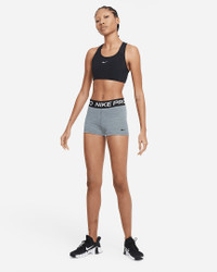 The Nike Pro Shorts are made with stretchy, sleek and supportive fabric that wicks sweat to help you stay dry and comfortable during your workout. This product is made with at least 50% recycled polyester fibers. Benefits - Nike Dri-FIT technology helps you stay dry, comfortable and focused. - A wide, mid-rise elastic waistband feels supportive around your core. Product Details - Tight fit for a body-hugging feel - 78-83% polyester/17-22% spandex - Material percentages may vary. Check label for actual content. - Machine wash - Imported - Shown: Smoke Grey/Heather/Black/Black - Style: CZ9857-084 SIZE & FIT Tight fit: snug and form-fitting Medium support: feels ke a snug hold to keep everything in place Mid-Rise: sits just below your natural waist (smallest part of your torso)